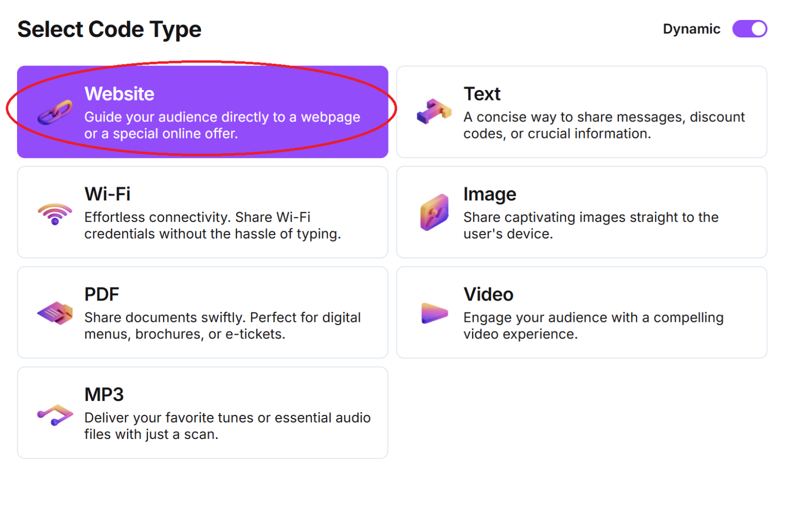 Select the Website option from the code type menu.