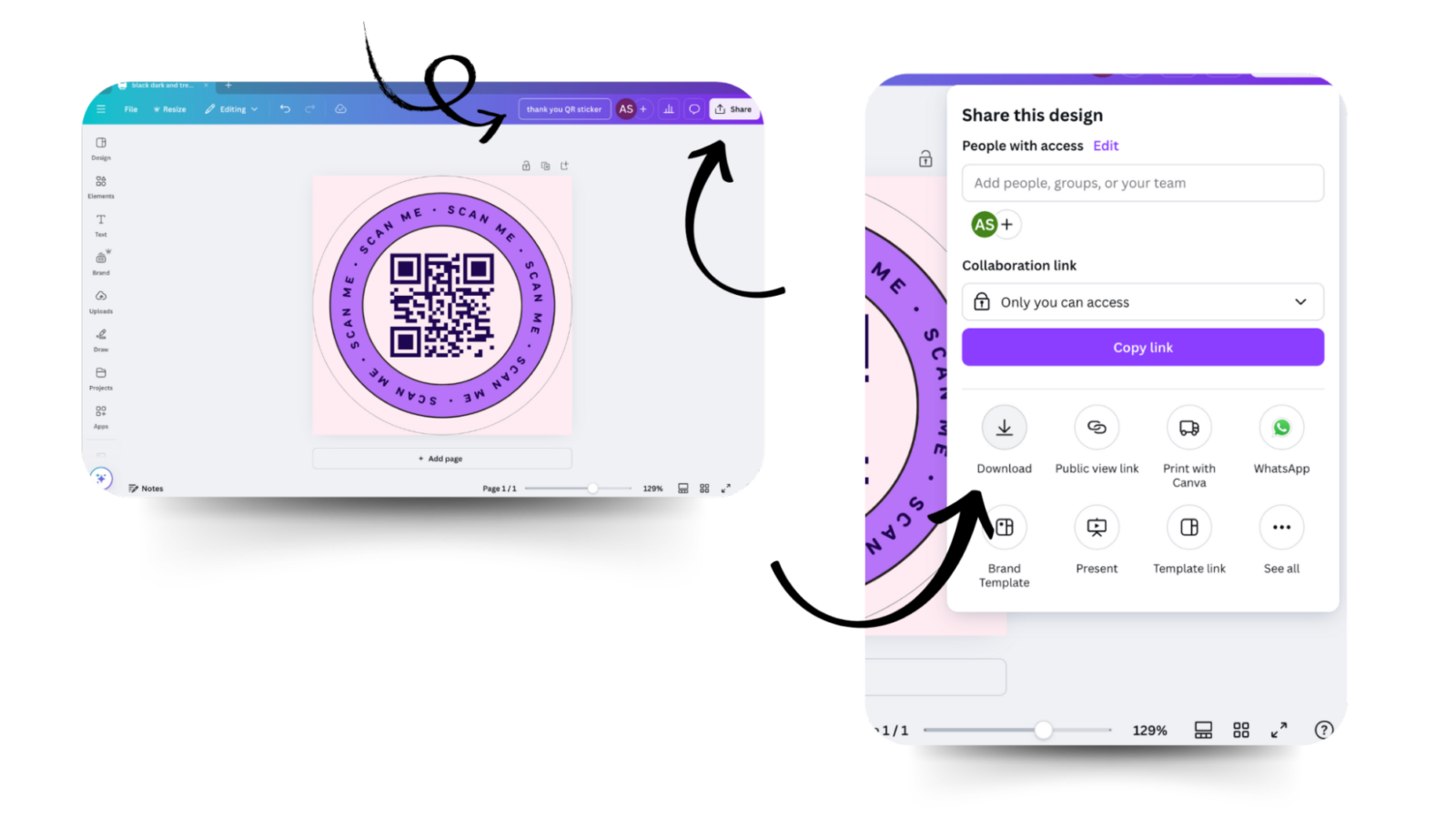 Design your Sticker.Now that your QR code is ready move on to the steps to create the sticker. The first step is to choose the right tool for it. Canva is an easy-to-use design tool that provides a wide range of templates and various editing options. Let’s create a QR code sticker on Canva: